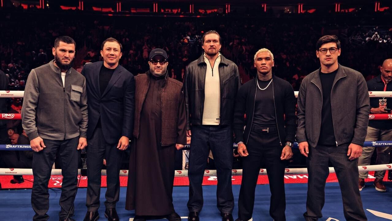 Бывшие абсолютные чемпионы мира по боксу — россияне Артур Бетербиев, Дмитрий Бивол и украинец Александр Усик — сделали совместное фото на церемонии вручения премии Ring Awards.
